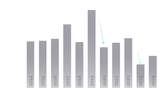 COVID and rate hikes drove senior housing valuations to a 14-year low in 2023, and they slightly recovered in 2024. The market has bottomed.